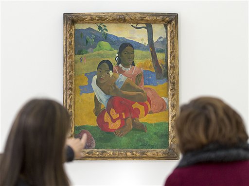 En este 06 de febrero 2015 y fotos mujeres miran la pintura "Nafea faa Ipoipo?" (1892) por el pintor francés Paul Gauguin en la Fundación Beyeler en Riehen, Suiza. Los propietarios suizos de uno de francés postimpresionista más famosas obras de Paul Gauguin de su tiempo en Tahití dicen que han vendido la pintura, pero no revelará el precio o el comprador. Ruedi Staehelin, que habla de la Staehelin Family Trust, confirmó a The Associated Press que sólo la pintura al óleo, llamado "Nafea faa Ipoipo?" _ Tahitian para "¿Cuándo vas a casar?" _ Se ha vendido. Citando anónimas arte insiders mundo, los medios de comunicación suizos habían informado a principios de esta semana que el cuadro fue comprado por la realeza de Qatar por $ 300 millones, por lo que es la pintura más cara de la historia. © AP Photo / Keystone, Georgios Kefalas En este 06 de febrero 2015 y fotos mujeres mira el cuadro "Nafea faa Ipoipo?" (1892) por el pintor francés Paul Gauguin en la Fundación Beyeler en Riehen, Suiza. Los propietarios suizos de uno de francés postimpresionista Paul ...